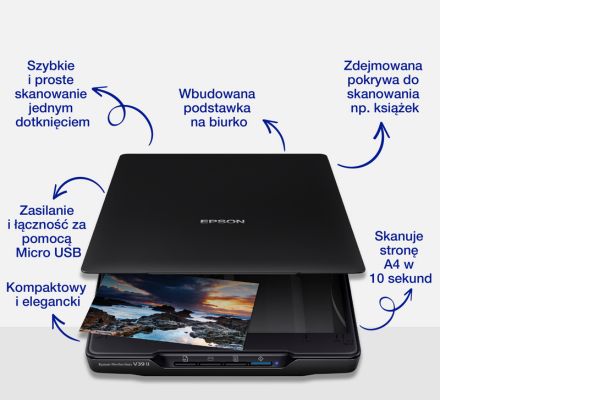 EPSON Perfection V39II to kompaktowy skaner płaski, przeznaczony do codziennego użytku domowego lub biurowego, umożliwiający digitalizację dokumentów, zdjęć i ilustracji w rozdzielczości optycznej do 4800 dpi. Solidne urządzenie z dobrą jakością skanów, które precyzyjnie odwzorowują kolory i odcienie, zachowując wszystkie detale.