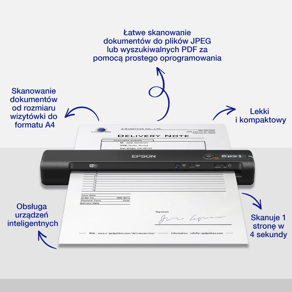 EPSON WorkForce ES-60W przenośny skaner biznesowy, A4