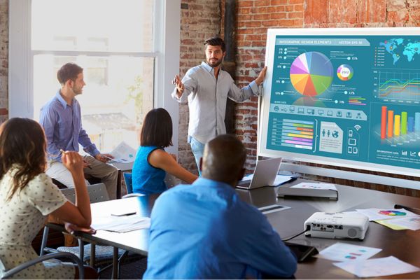 • Środowiska biznesowe w których urządzenie sprawdzi się do prezentacji biznesowych na dużym ekranie dzięki wysokiej jasności (4000 lumenów) i możliwości pracy w różnych pomieszczeniach, także tych oświetlonych.