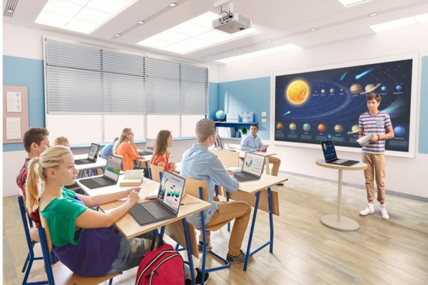 - Szkoły i uczelnie, które potrzebują wszechstronnego i ekonomicznego urządzenia do wyświetlania materiałów dydaktycznych na dużym ekranie w jasnych salach lekcyjnych z łatwym dostęp do materiałów z różnych urządzeń i wielu użytkowników.