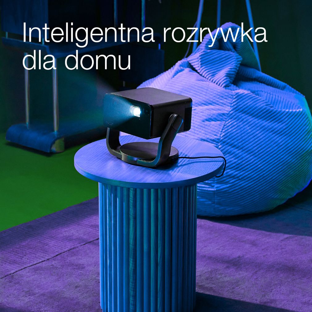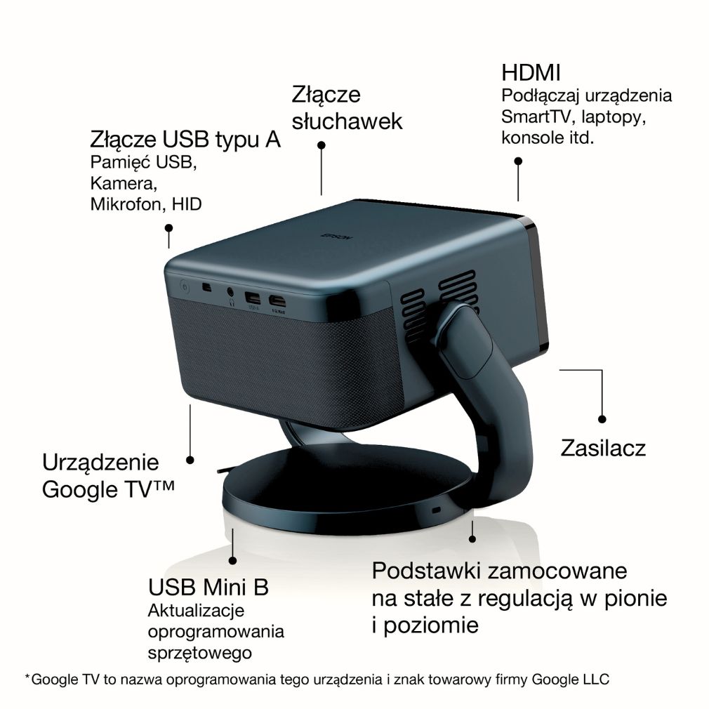 Dzięki wbudowanemu systemowi Google TV i łączności bezprzewodowej, projektor sprawdzi się u osób ceniących wygodę dostępu do szerokiej biblioteki multimediów bez konieczności podłączania dodatkowego sprzętu. Jego mobilna konstrukcja i regulowana podstawa umożliwiają szybkie ustawienie i projekcję obrazu w różnych miejscach.