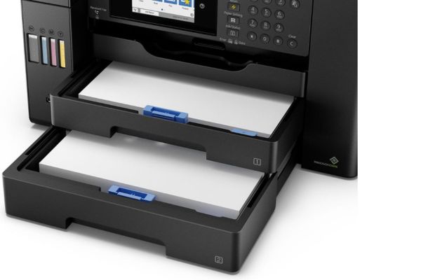 Urządzenie EcoTank L15160 standardowo posiada dwa podajniki papieru na 250 arkuszy każdy, wbudowany dupleks (automatyczny druk dwustronny) oraz ADF (automatyczny podajnik dokumentów skanera) na 50 kartek. Wszystkie obsługują różne nośniki do formatu A3+ włącznie.