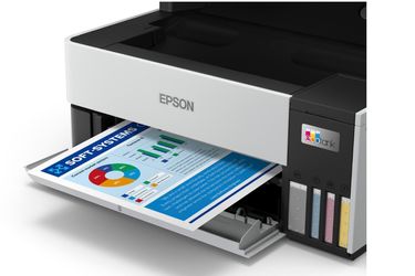 Wraz z urządzeniem producent dostarcza 2 duże pojemniki czarnego atramentu, które mogą wystarczyć nawet na ponad 13 000 wydruków oraz komplet kolorowych atramentów na ponad 5 000 wydruków. Duże pojemniki z atramentem są elementem wydajnej technologii EcoTank która daje wymierne korzyści w postaci niskich kosztów wydruku strony. Uzupełnienie atramentów nie dość że odbywa się rzadko to jeszcze jest błyskawiczne i bez zabrudzeń dzięki butelkom z systemem zabezpieczeń.