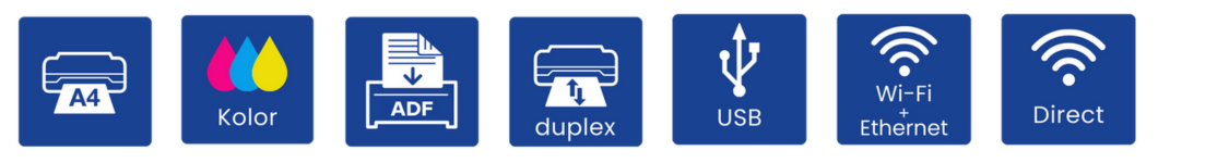 Funkcje: drukowanie, skanowanie, kopiowanie, faksowanie