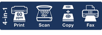 Funkcje: drukowanie, skanowanie, kopiowanie, faksowanie