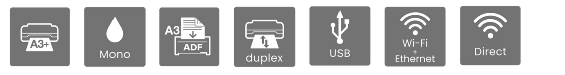 Ultraszybkie i wysokowydajne profesjonalne urządzenie wielofunkcyjne 4 w 1 drukujące z prędkością 100 str./min. Jest przeznaczone dla dużych grup roboczych i działów, które potrzebują szybkiego i niezawodnego drukowania, kopiowania czarno-białych dokumentów oraz skanowania w formacie A4 i A3. Urządzenie umożliwia również faksowanie dokumentów.