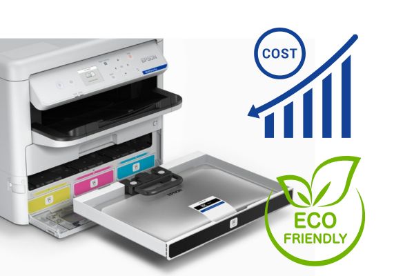 Niskie koszty wydruku zapewnia system stałego zasilania uzupełniany pojemnymi butelkami które wystarczają na nawet na kilkadziesiąt tysięcy wydruków. Niskie koszty utrzymania wynikają z braku konieczności okresowych przeglądów i wymian dodatkowych elementów jak ma to miejsce w technologii laserowej. Ogromne oszczędności przynosi nieporównywalnie niższe zużycie energii wynikające z technologii druku, która nie wymaga podgrzewania w trakcie procesu druku. Profesjonalne urządzenia atramentowe serii WorkForce Pro pobierają w czasie pracy zaledwie kilkadziesiąt wat (ok. 30-50W w zależności od modelu). Podczas gdy w tym samym czasie urządzenie laserowe podobnej klasy pobiera …ponad 1 000W!