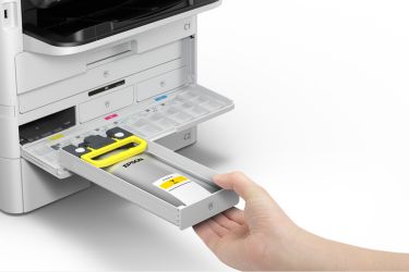 W drukarce EPSON WF-C5390DW zastosowano atramenty pigmentowe DURABrite Ultra, które gwarantują trwałość i jakość wydruków. Duże zasobniki z atramentem pozwalają na możliwość wydruku dużej liczby stron bez konieczności częstej wymiany materiałów eksploatacyjnych. Sama wymiana pojemników jest szybka i czysta. Dzięki łączności bezprzewodowej, drukarka pozwala na drukowanie z różnych urządzeń z dowolnego miejsca. Możliwość wpięcia druakarki do lokalnej sieci przewodowej Ethernet zapewnia szybkie i bezpieczne drukowanie dla całej grupy roboczej.