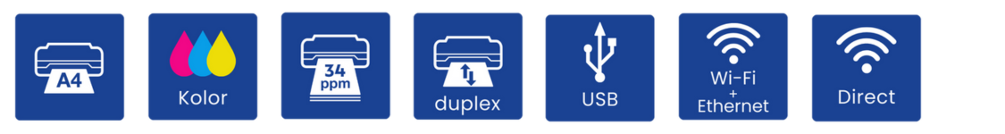 Kolorowa drukarka atramentowa A4 dla małych i średnich grup roboczych w firmach, korporacjach oraz instytucjach. Ekonomiczna i przyjazna dla środowiska.