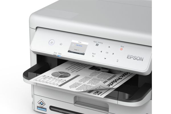 Prędkość drukowania na poziomie 34 str./min, podajnik na 330 arkuszy (z możliwością rozbudowy do 1 830), automatyczny druk dwustronny, duże zasobniki z atramentem, szybka komunikacja bezprzewodowa oraz bezpieczne udostępnienie w lokalnej sieci przewodowej (Ethernet), kompatybilność z wieloma systemami i aplikacjami to cechy która spokojnie może zastąpić drukarki laserowe dla małych i średnich grup roboczych w środowisku biznesowym. Natomiast bardzo niski pobór mocy w trakcie drukowania (ok. 30-40W) w porównaniu do kilkuset wat w laserówce oraz błyskawiczny wydruk pierwszej strony, już po kilku sekundach to argumenty które przeważają mocno szalę na korzyść atramentowych drukarek biznesowych EPSON WorkForce, takich jak WF-M5399DW.