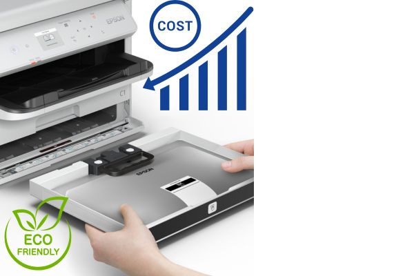 Drukarka EPSON WF-M5399DW została zaprojektowana tak, aby zminimalizować koszty związane z jej eksploatacją przy jednoczesnym optymalnym pokryciu potrzeb typowego biura w firmie lub instytucji. Zapewnia to m.in. innowacyjny system zasilania atramentami które wystarczają nawet na 40 000 wydruków. Za niskie rachunki związane z użytkowaniem drukarki odpowiada z kolei technologia druku w głowicach, niewymagająca podgrzewania w trakcie druku (wielokrotnie niższy pobór mocy w trakcie drukowania w stosunku do drukarek laserowych). Mniejsza liczba wymiennych elementów eksploatacyjnych oraz brak wymaganych przeglądów konserwacyjnych to również wymierne oszczędności dla firmy. Wszystkie wymienione rozwiązania mają także istotny wpływ na ochronę środowiska, co jest również ważnym czynnikiem przy wyborze urządzeń drukujących.