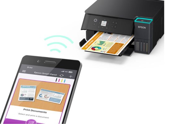 Bezprzewodowa łączność Wi‑Fi umożliwia korzystanie z urządzenia bez konieczności podłączania kabla. Dokumenty można wysyłać do druku z laptopów, smartfonów i tabletów z dowolnego miejsca w domu lub biurze. Takie rozwiązanie przyspiesza pracę i ułatwia współdzielenie urządzenia dla kilku użytkownikami. Funkcje skanowania pozwalają zapisywać dokumenty w różnych formatach i przesyłać je bezpośrednio do chmury lub jako załączniki e‑mail. Bezpłatna aplikacja Epson Smart Panel daje możliwość obsługi i kontroli urządzenia oraz zadań z poziomu smartfona.