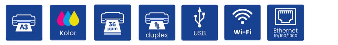 Kompaktowa i szybka drukarka kolorowa A3 z dużymi możliwościami i imponującymi parametrami dla małych i średnich przedsiębiorstw, instytucji, które potrzebują niezawodnego urządzenia do drukowania wysokiej jakości materiałów w różnych formatach aż do A3.
