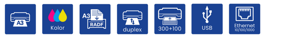 Profesjonalne kolorowe urządzenie wielofunkcyjne dla małych i średnich grup roboczych. Drukowanie, skanowanie, kopiowanie w kolorze A3 oraz faks.