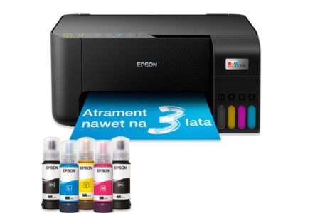 W zestawie wraz z urządzeniem otrzymasz pojemniki z atramentem, które mogą wystarczyć nawet na 3 lata drukowania. W urządzeniu L3270 zastosowano technologię EcoTank, która gwarantuje niskie koszty wydruku oraz łatwy system uzupełniania atramentu. Uzupełnianie jest szybkie, czyste i bardzo proste i bez ryzyka pomyłki koloru, no i przede wszystkim rzadko się zdarza za sprawą pojemnych i wydajnych pojemników. Już nigdy nie wrócisz do kartridży.