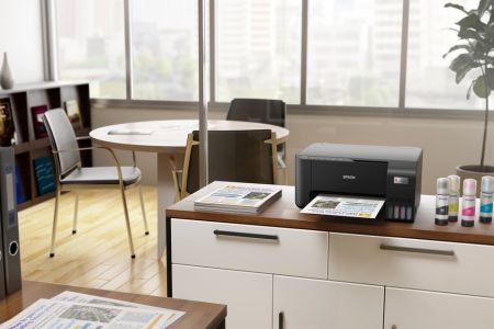 Niskie koszty wydruków dzięki systemowi stałego zasilania atramentem EcoTank oraz bardzo niski pobór mocy za sprawą głowicy niewymagającej wysokich temperatur w trakcie drukowania zadbają o portfele domowych użytkowników i budżety małych firm.